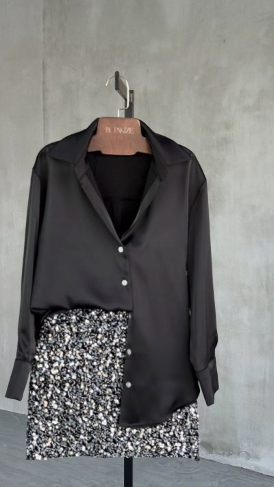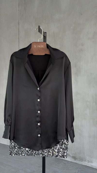BLACK SLEEVE BELT DETAILED PADDED SHIRT