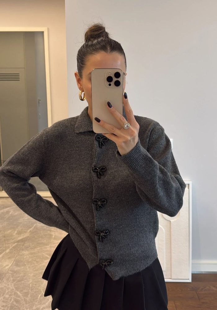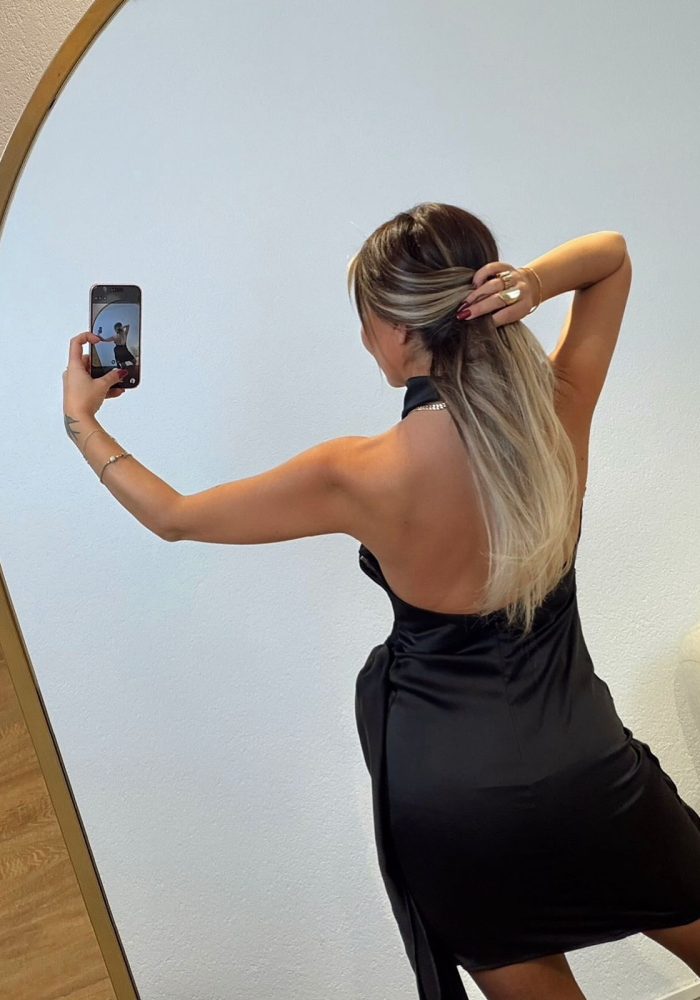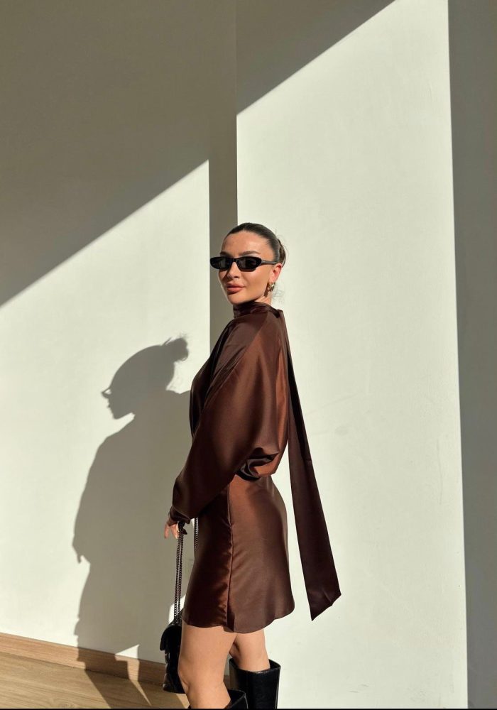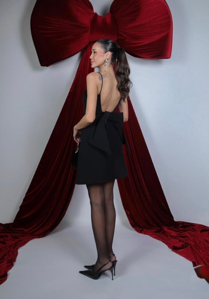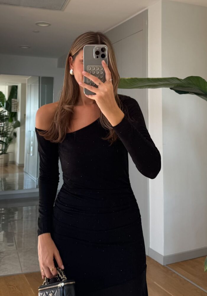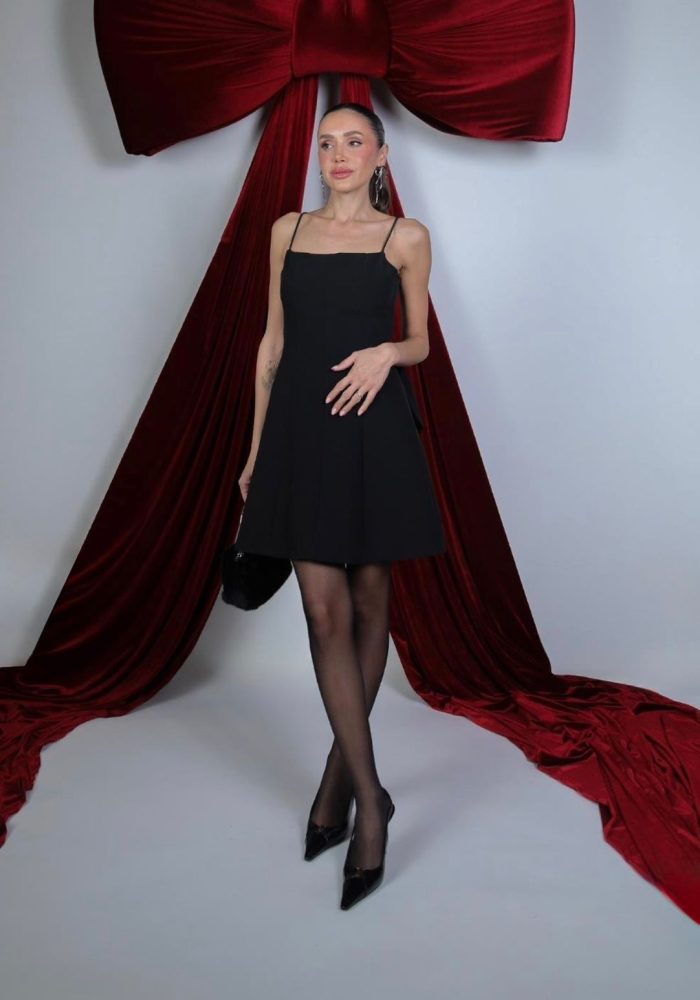 BLACK SHAWL DETAILED SLIT VELVET DRESS