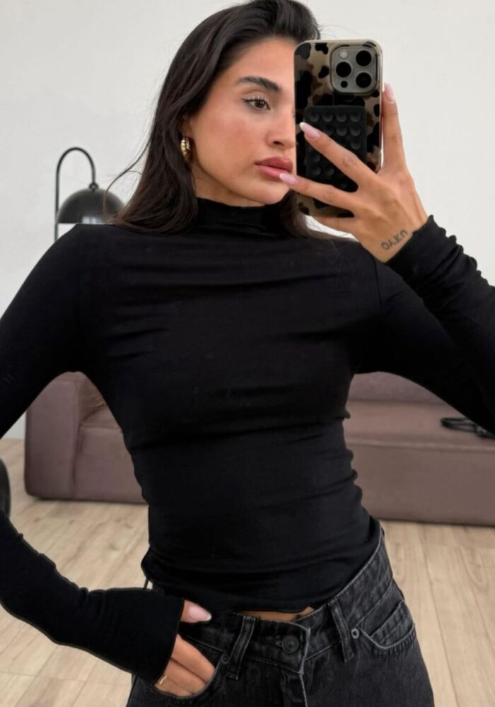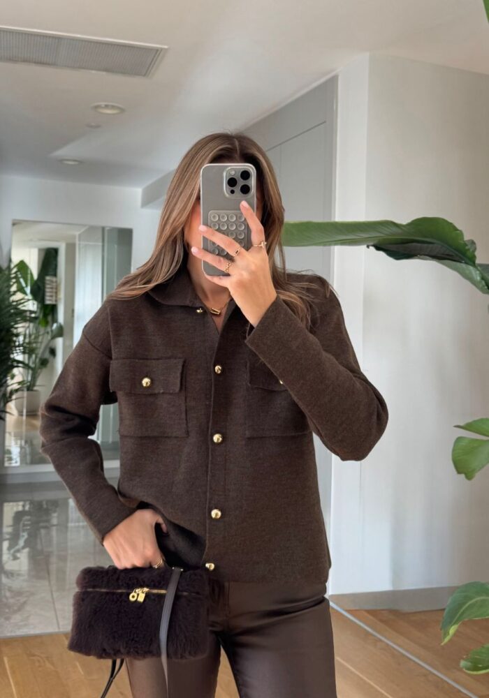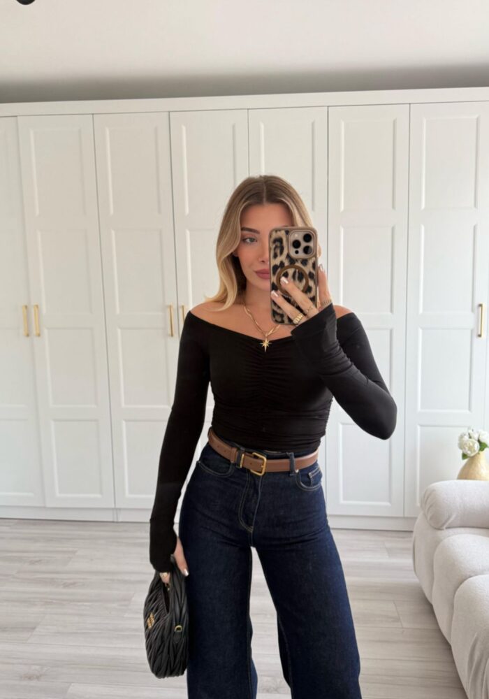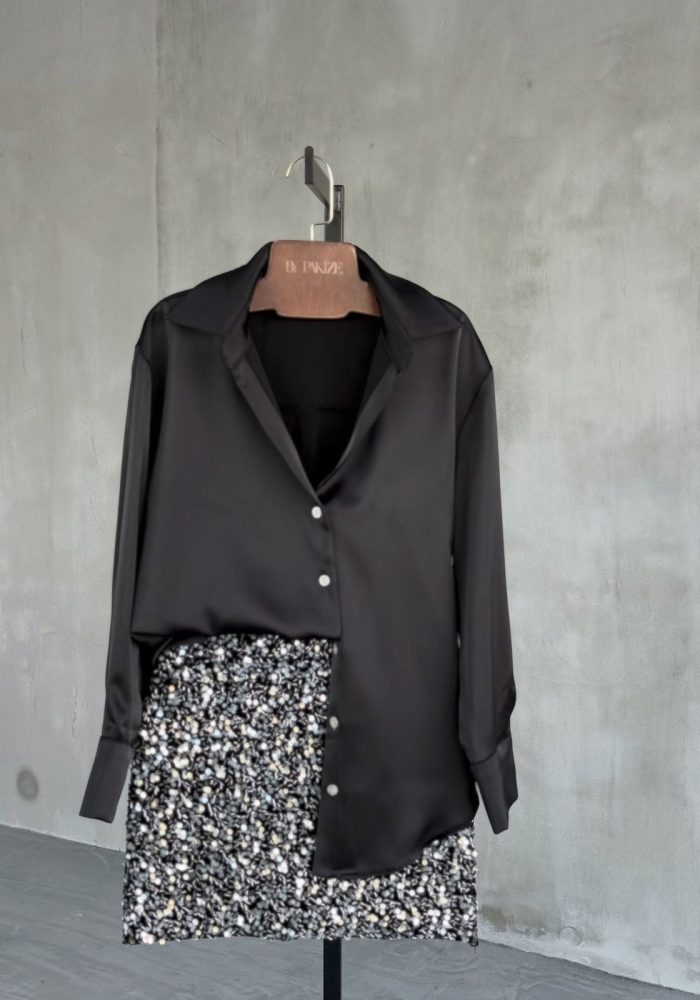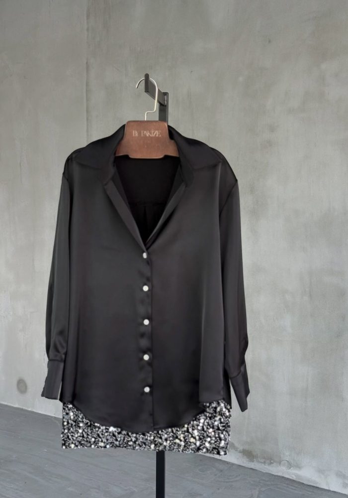 BLACK SLEEVE BELT DETAILED PADDED SHIRT