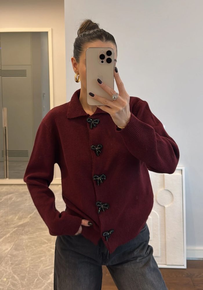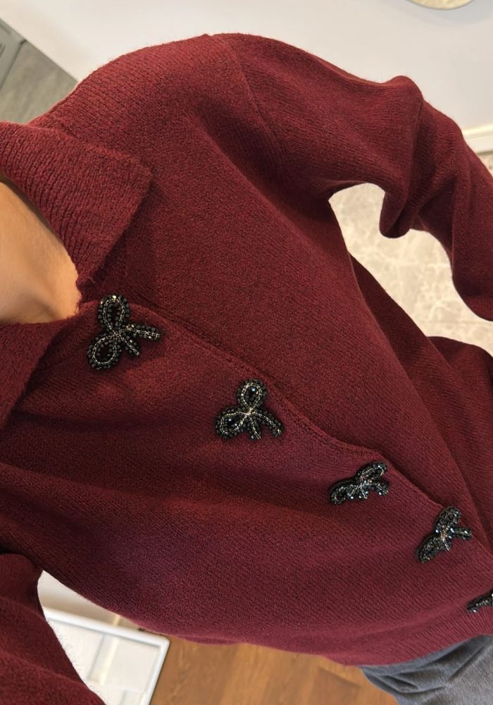RED SHAWL DETAILED SLIT VELVET DRESS