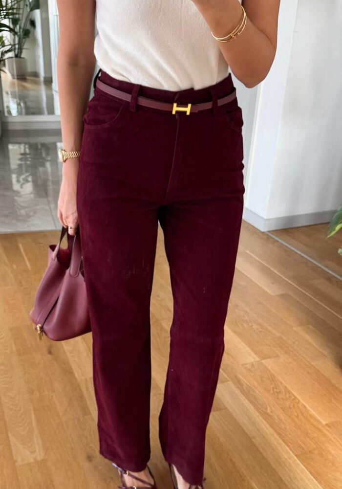 Bunny Straight Cut Velvet Skirt – Claret Red