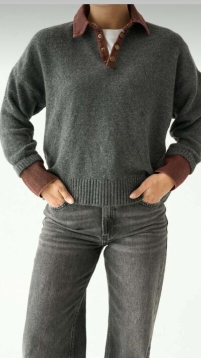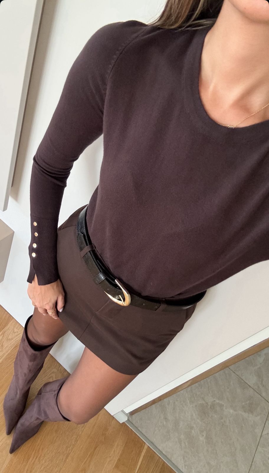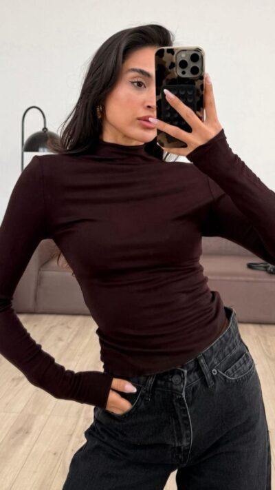 Half fisherman long sleeve bodysuit Brown