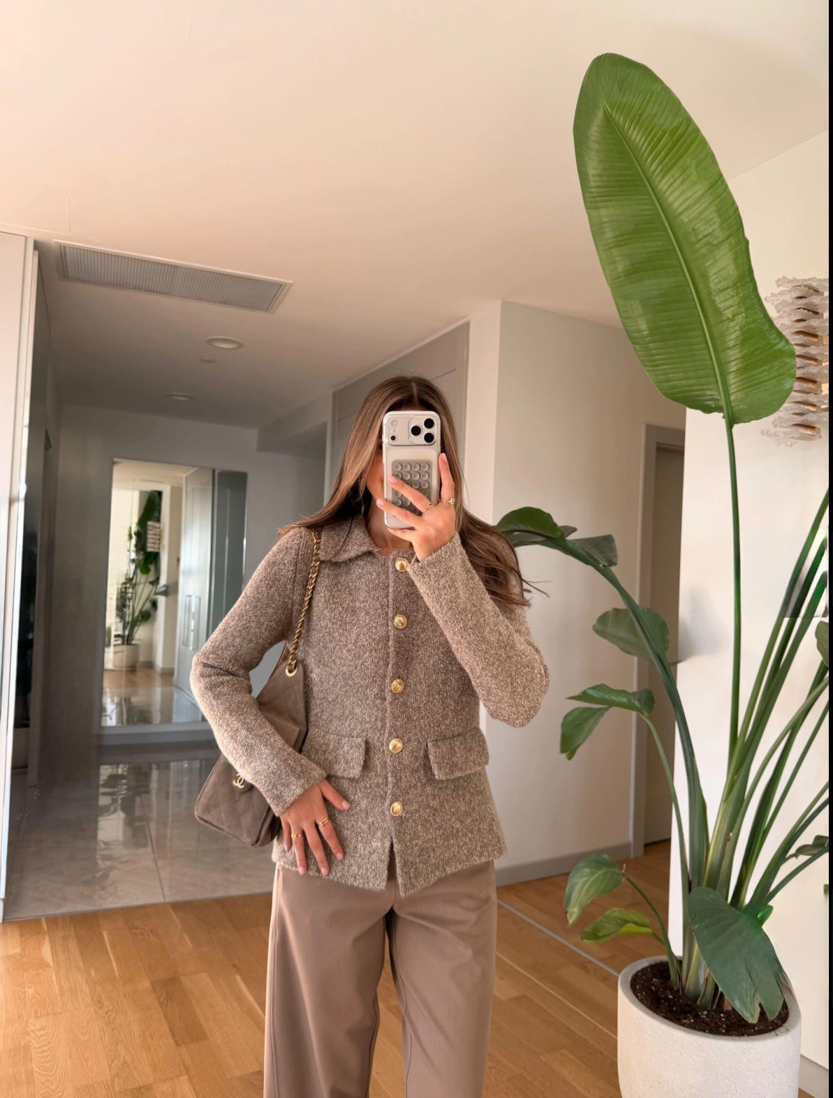 Beige Wool Button Front Cardigan