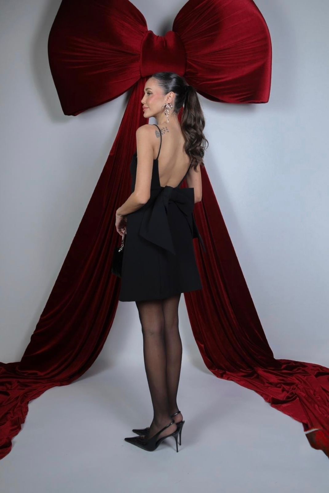 BLACK SHAWL DETAILED SLIT VELVET DRESS