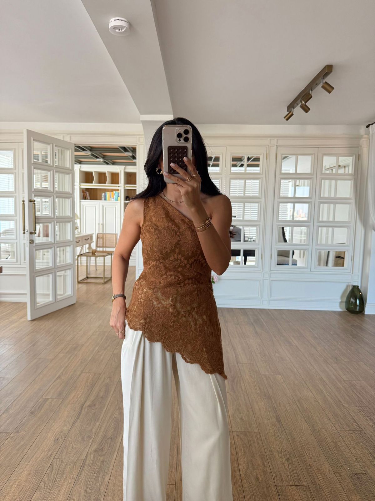 Brown Lace One Shoulder Top