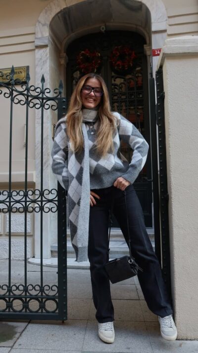 Grey and white cardigan