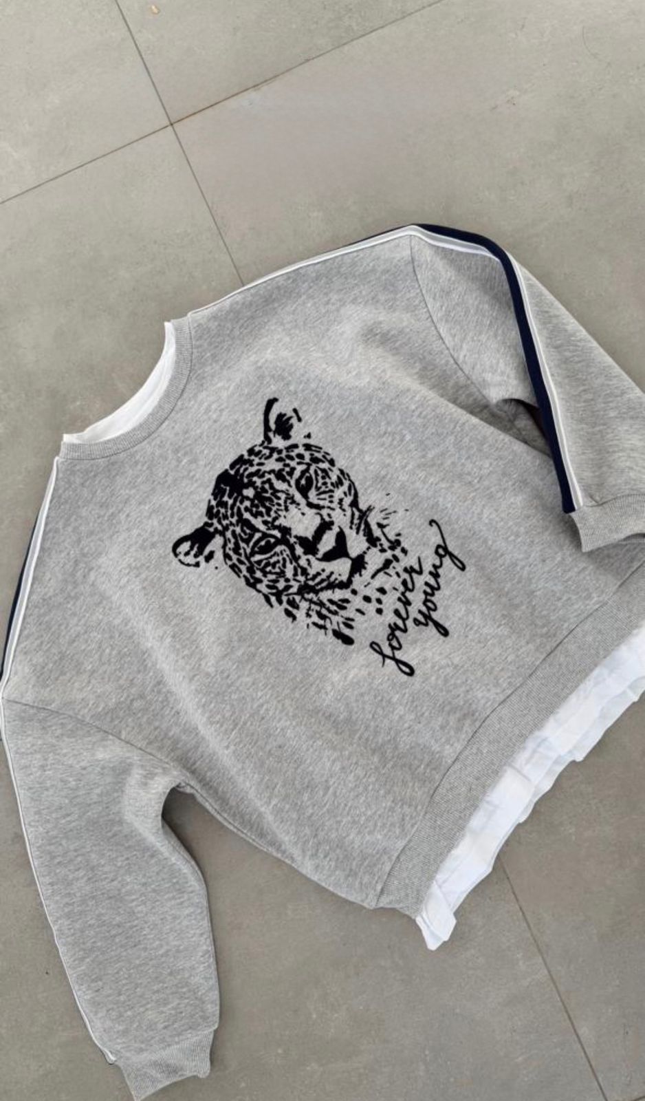 Gray Leopard Graphic Forever Young Sweater