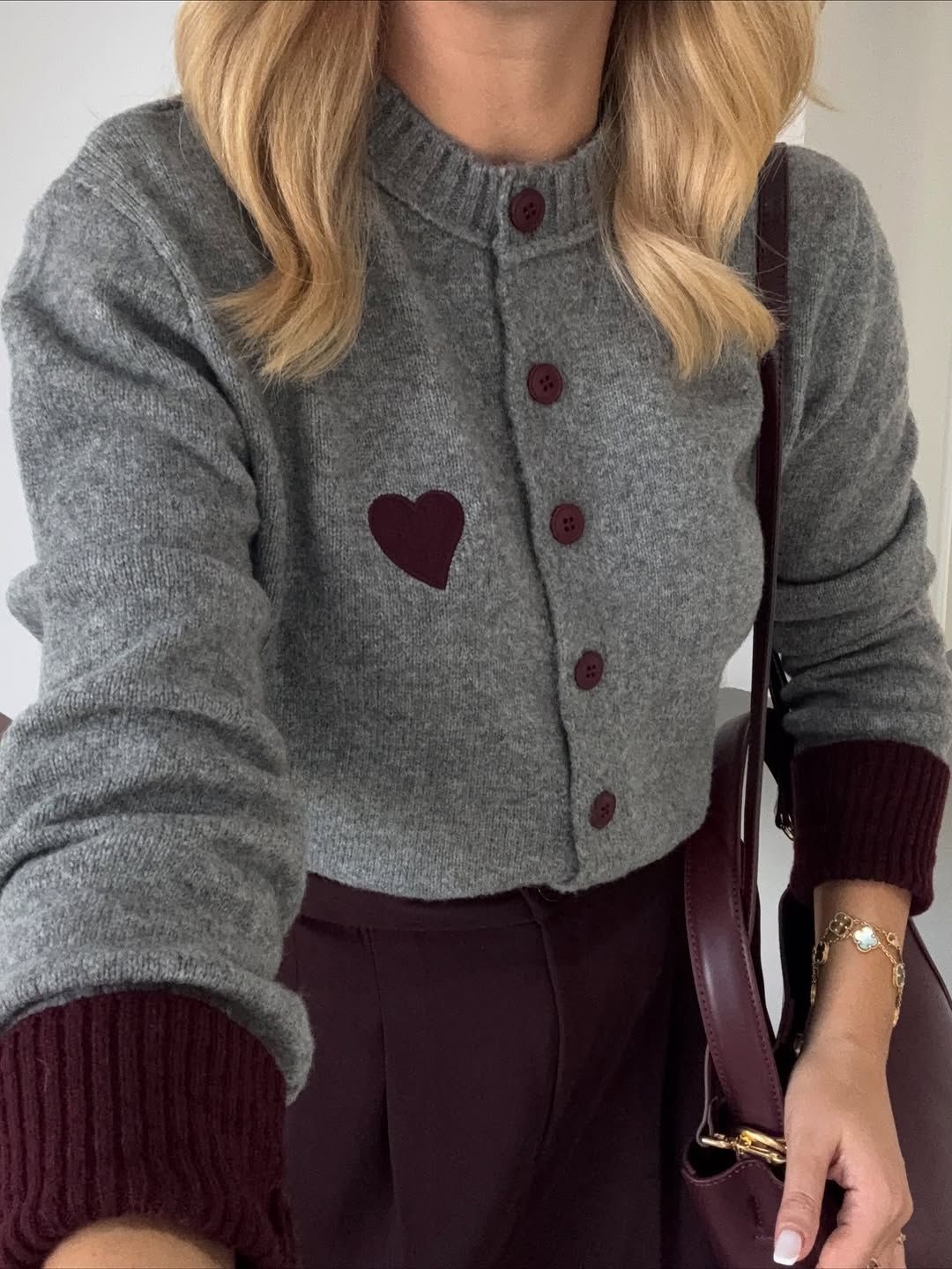 Heart cardigan grey and burgundy