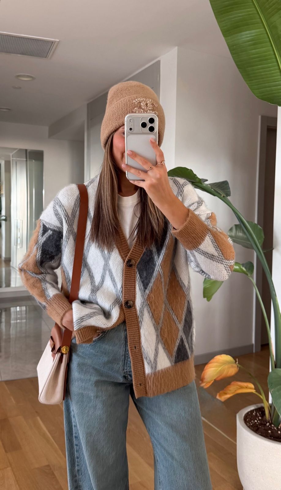 Ivo Baklava Patterned Cardigan – Camel-ecru