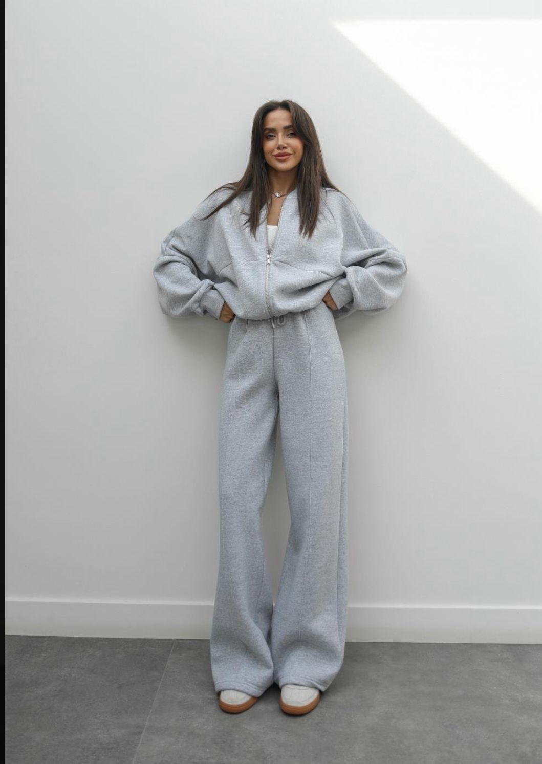 Light Grey Brendon Zippered Jacket Tracksuit Set