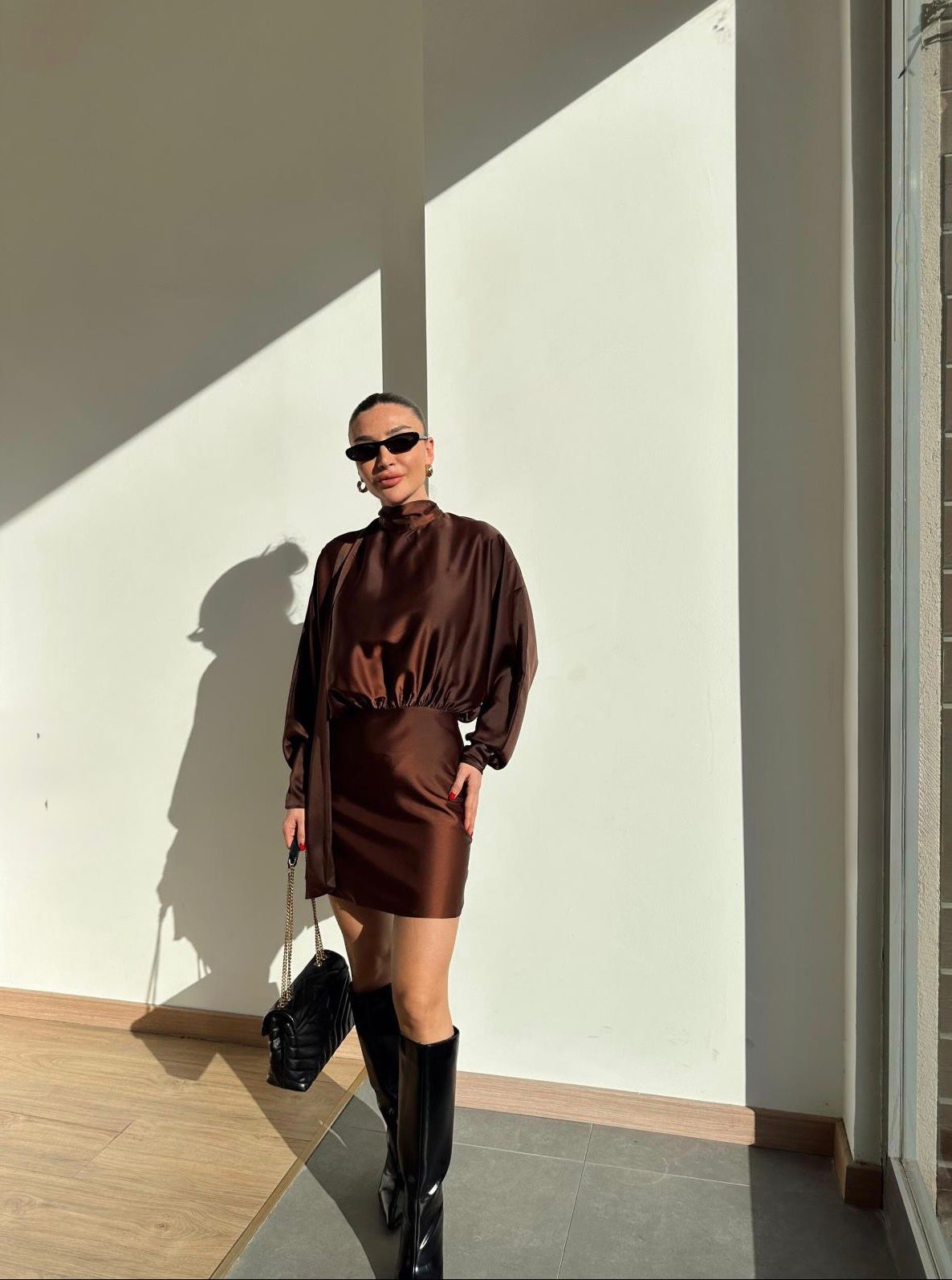 BLACK SHAWL DETAILED SLIT VELVET DRESS