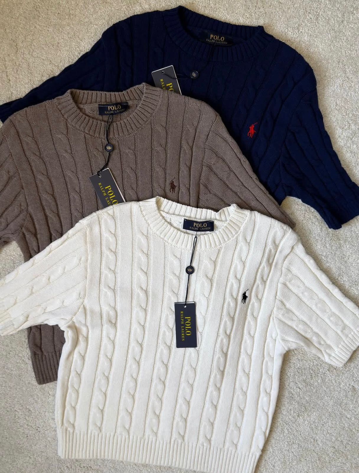 Navy Cable Knit Short Sleeve Sweater