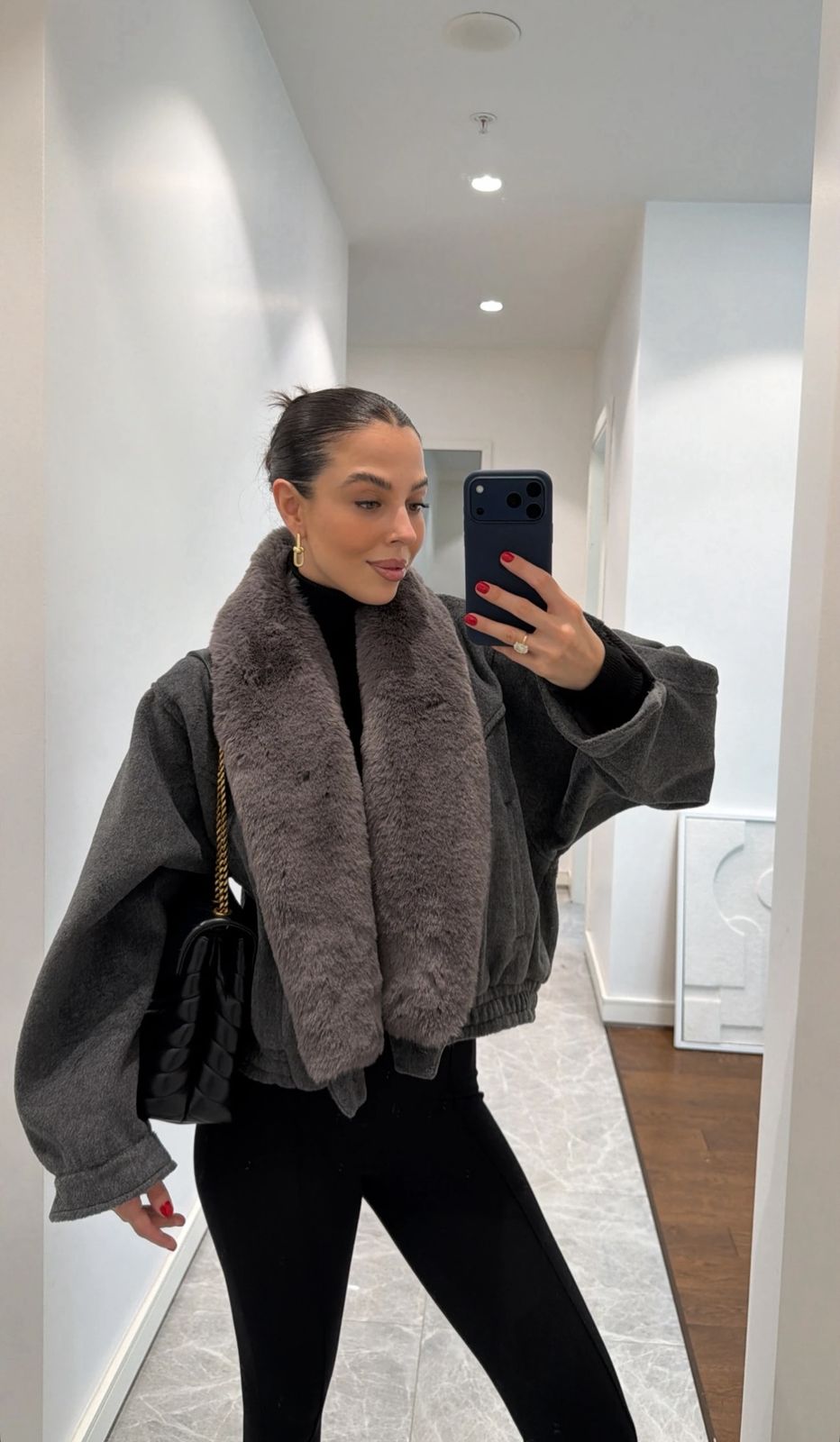 Plush Collar Detailed Stamped Coat/brown