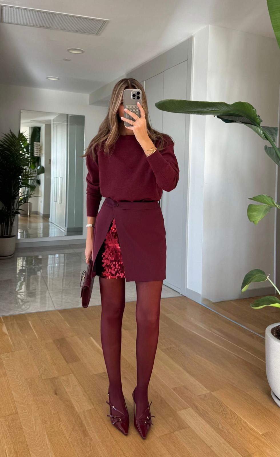 Bunny Straight Cut Velvet Skirt – Claret Red