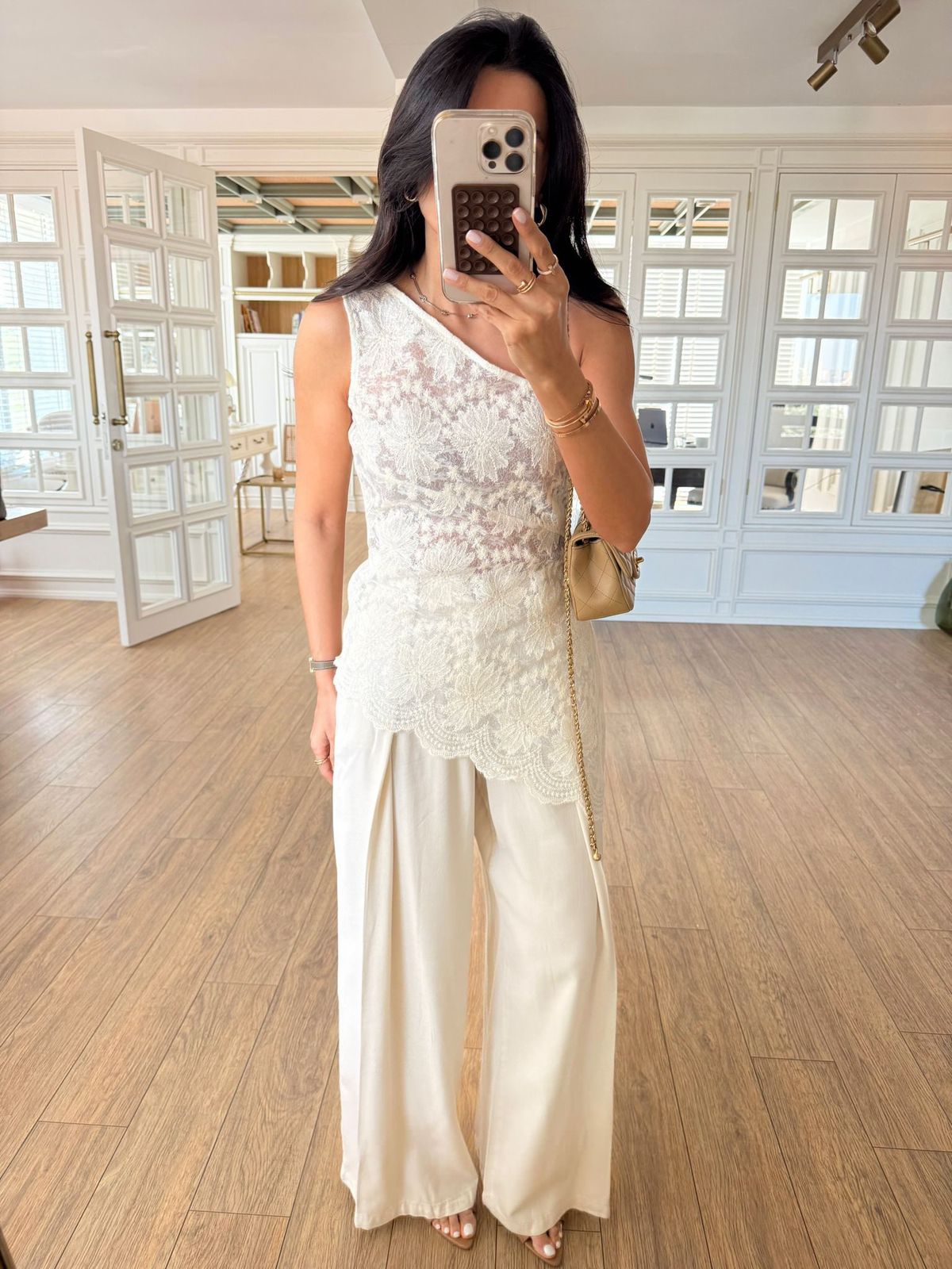 White Lace One Shoulder Top